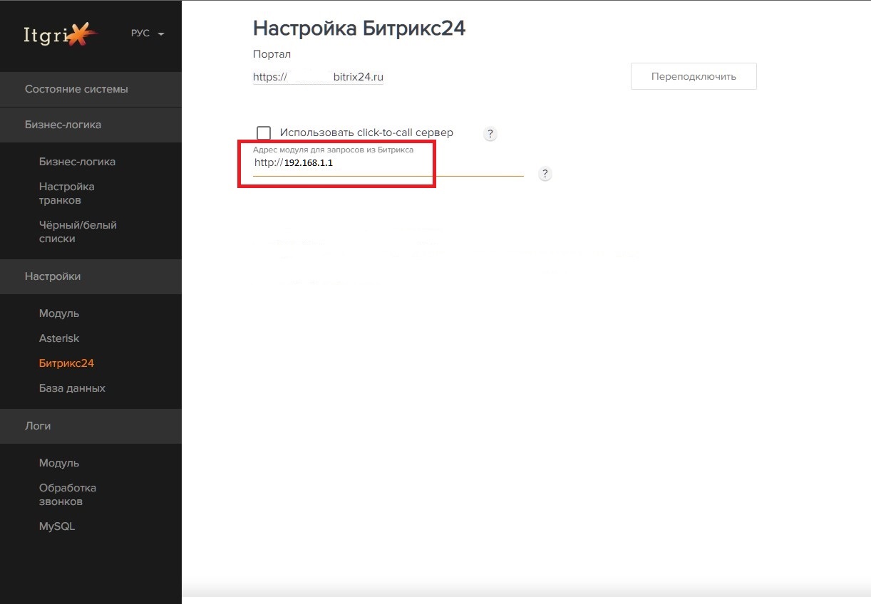 4. Такой же адрес для запросов click-to-call должен быть указан в настройках модуля, в разделе Битрикс24: